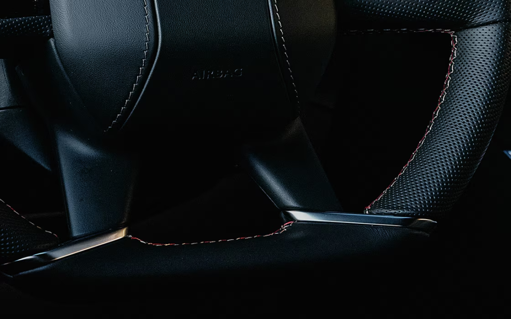 Η στεφάνη του τιμονιού διαθέτει επένδυση από διάτρητο δέρμα με χρυσαφί εμφανείς ραφές, και είναι δουλεμένο στο χέρι απο εξειδικευμένους ταπετσιέρηδες που χρησιμοποιούν αποκλειστική τεχνική της DS Automobiles